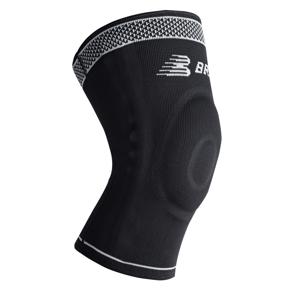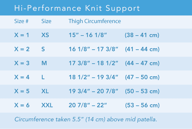 The Hi-Performance Knit Support provides compression, warmth, and patella stabilization. It features three-dimensional knitting for a breathable, comfortable fit and a contoured silicone patella donut for support.